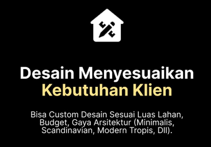 Bisa custom desain sesuai luas lahan, budget, gaya arsitektur (minimalis, scandinavian, modern tropis, dll).