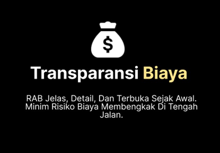 RAB jelas, detail, dan terbuka sejak awal. Minim risiko biaya membengkak di tengah jalan.